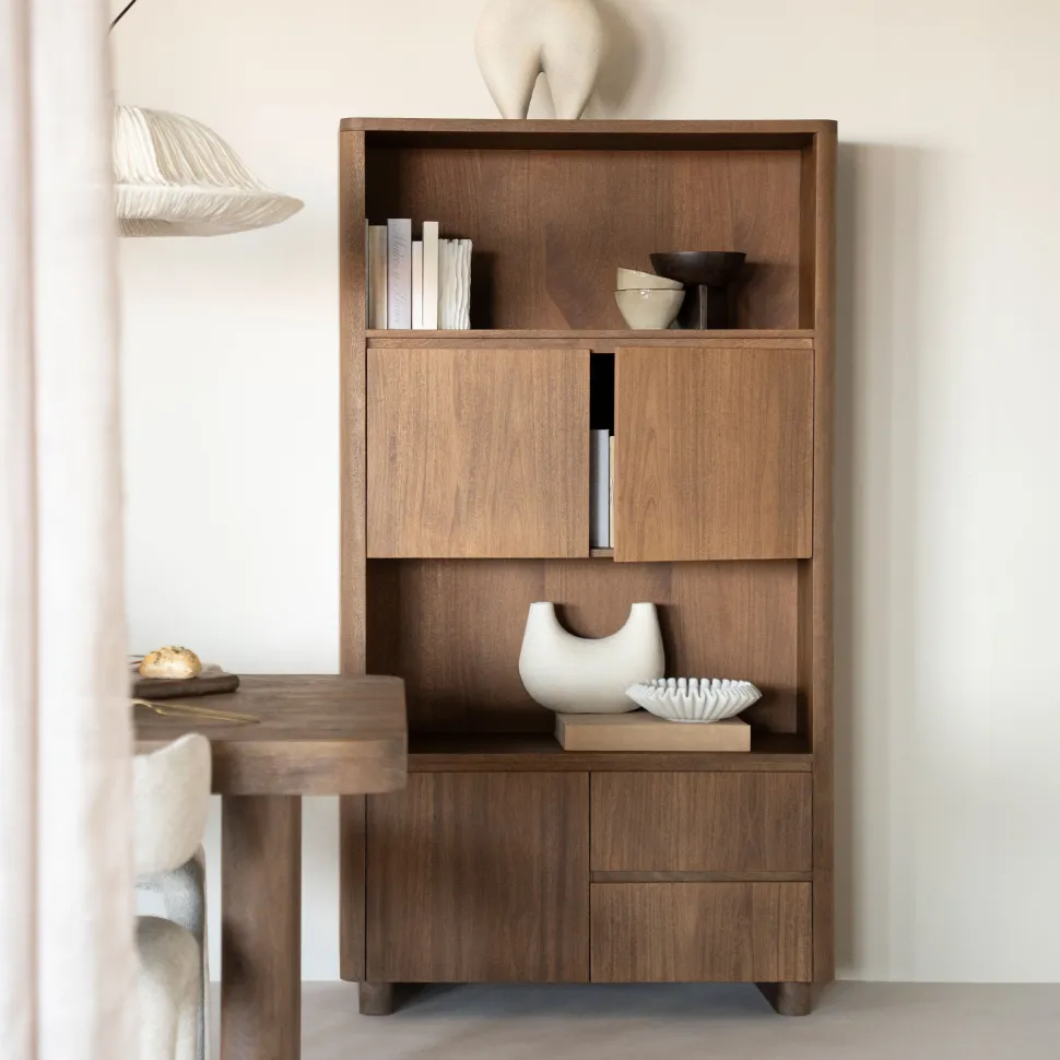 De combinatie van open en gesloten elementen geeft de kast een dynamische look, met ruimte voor zowel decoratieve als persoonlijke accenten. Een ontwerp van Eleonora met een retro uitstraling, voor liefhebbers van natuurlijke materialen met een stoer randje.
