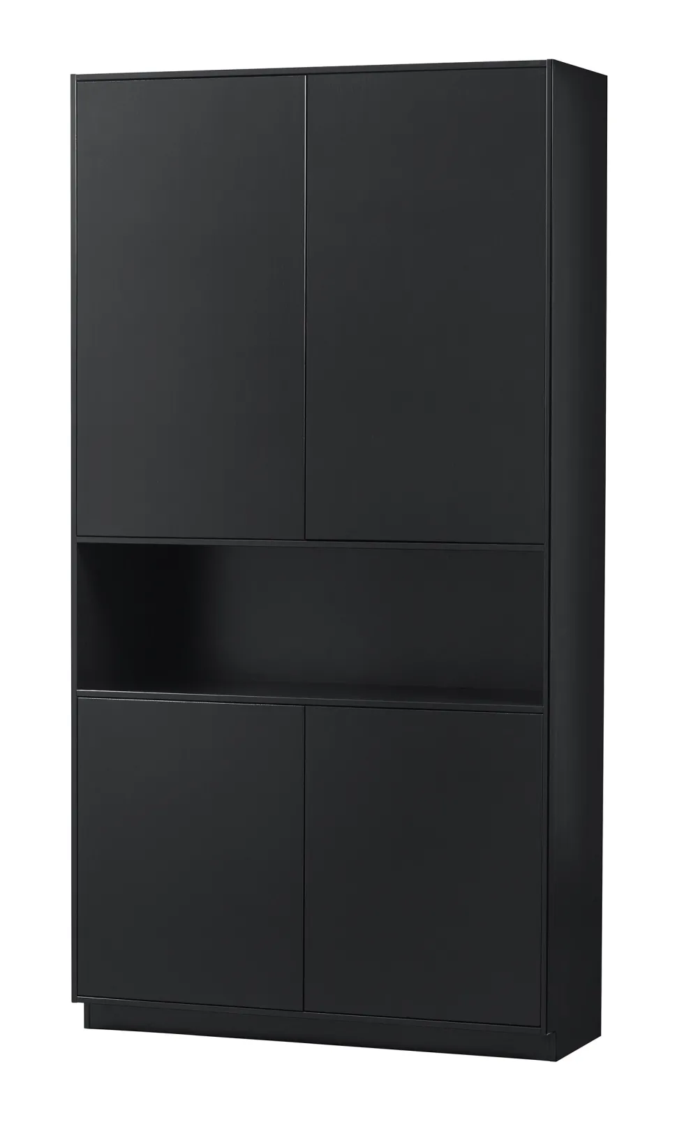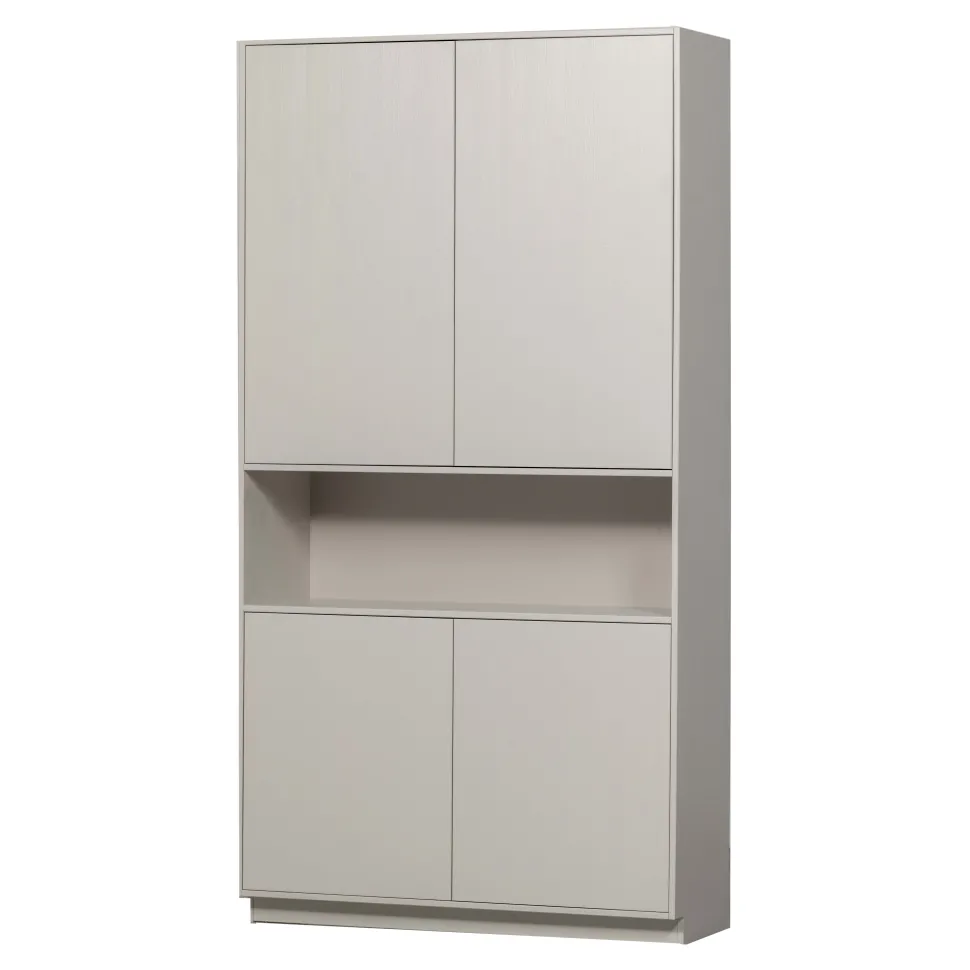 De Finca buffet-/opbergkast 110 cm is de brede variant, de smalle buffetkast is een 1-deurs van 40 cm breed. De bovenste twee deuren van de Finca buffetkast dekken drie handige opbergvakken af. Hieronder bevindt zich een open vak voor het presenteren van jouw mooiste woondecoratie. De twee onderste deuren houden nog eens twee ruime opbergruimten uit het zicht. De twee bovenste – en twee onderste vakken hebben elk een hoogte van 32 cm, een breedte van 108 cm en een diepte van 37 cm. De twee vakken in het midden hebben een hoogte van 34 cm. De onderrand van de buffetkast laat 7 cm ruimte over aan de voorzijde, hierdoor lijkt het meubel te zweven.