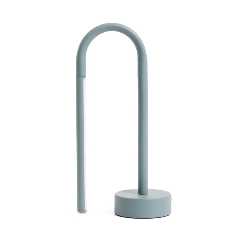 - Draagbare tafellamp van aluminium met grijs gelakte afwerking.
