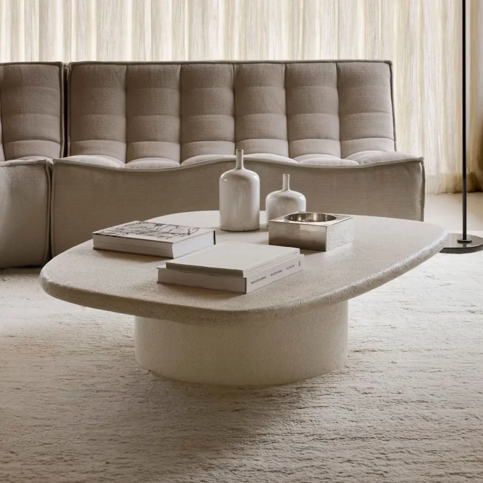 Organische Salontafel Elements Microcement, 134 x 96cm, kleur Off White