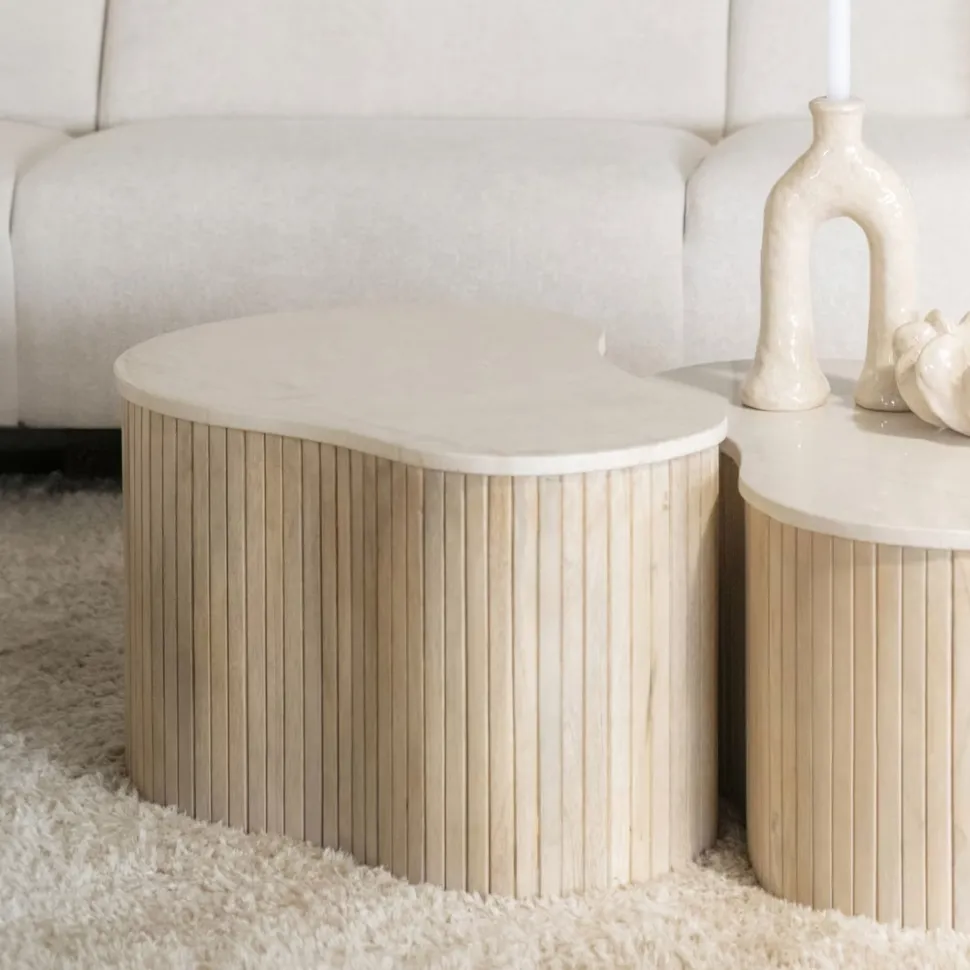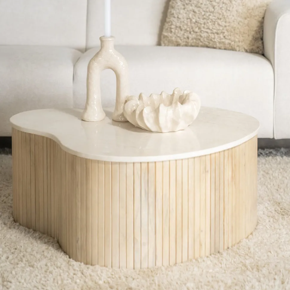 Organische Salontafel Kira Mangohout en marmer (per stuk)