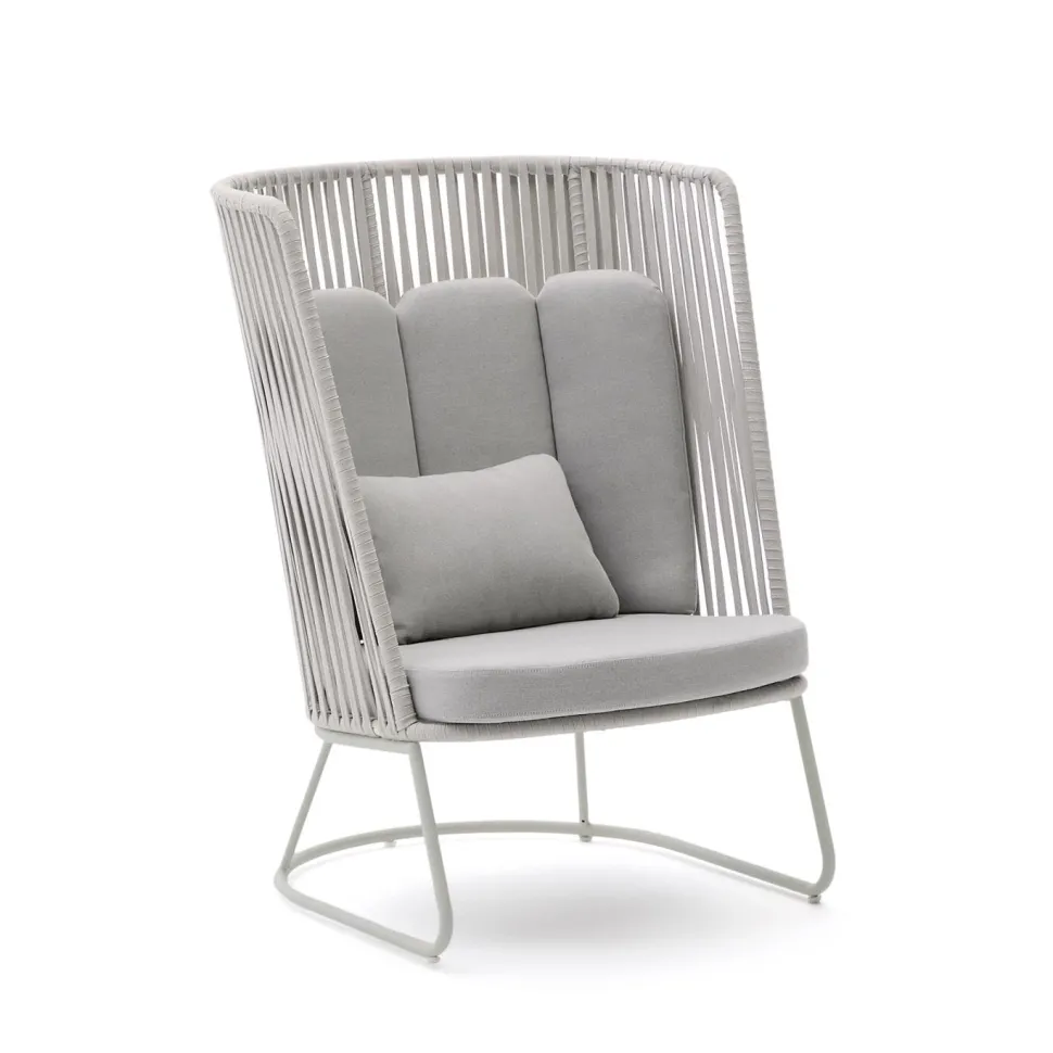 - Fauteuil met handgevlochten rug- en armleuningen met UV-bestendig touw.