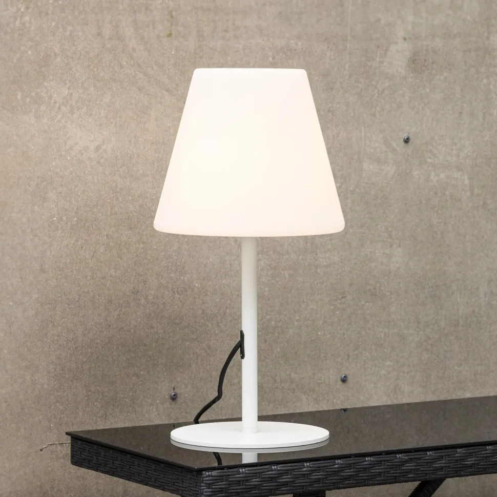 De Suleiman buitenlamp is de perfecte combinatie van vorm en functie. Deze elegante tafellamp valt op door zijn witte kleur en voegt een fris en modern tintje toe aan je buitenomgeving. Gemaakt van kunststof en staal is Suleiman zowel robuust als duurzaam, klaar om alle weersomstandigheden te weerstaan en jaar na jaar zijn schoonheid te behouden. Met zijn elegante ontwerp past Suleiman harmonieus in allerlei buitenomgevingen en is hij een aanvulling op je tuin, terras of patio. Verlicht je favoriete plek en creëer een uitnodigende sfeer voor buitenavonden. Suleiman wordt eenvoudig van stroom voorzien via een 200 cm lang snoer, waardoor je flexibel bent in het kiezen van een locatie. Deze lamp is niet alleen praktisch, maar ook een visueel genot dat je buitenomgeving naar een nieuw niveau tilt. De Suleiman buitenlamp combineert stijl, duurzaamheid en gebruiksgemak in één product. Creëer een sfeervolle buitenomgeving met Suleiman en geniet het hele jaar door van lange, mooie avonden.