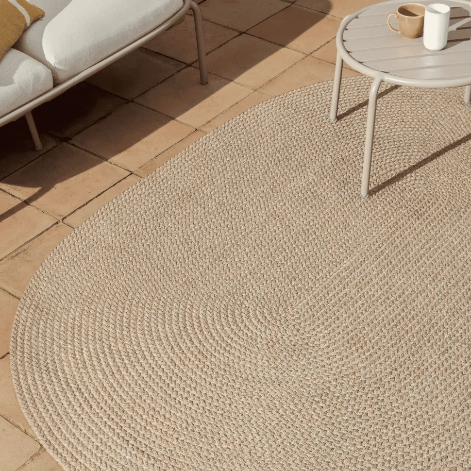 Het Despas tapijt is gemaakt van handgevlochten synthetische vezels, waardoor het textuur en een verzorgde afwerking heeft. Het ontwerp en de materialen bieden een slijtvast oppervlak voor zowel binnen als buiten. De synthetische vezels zijn gemakkelijk schoon te maken en behouden hun uiterlijk bij blootstelling aan temperatuurschommelingen. Omdat het handgemaakt is, kan het lichte variaties vertonen die het een uniek karakter geven.