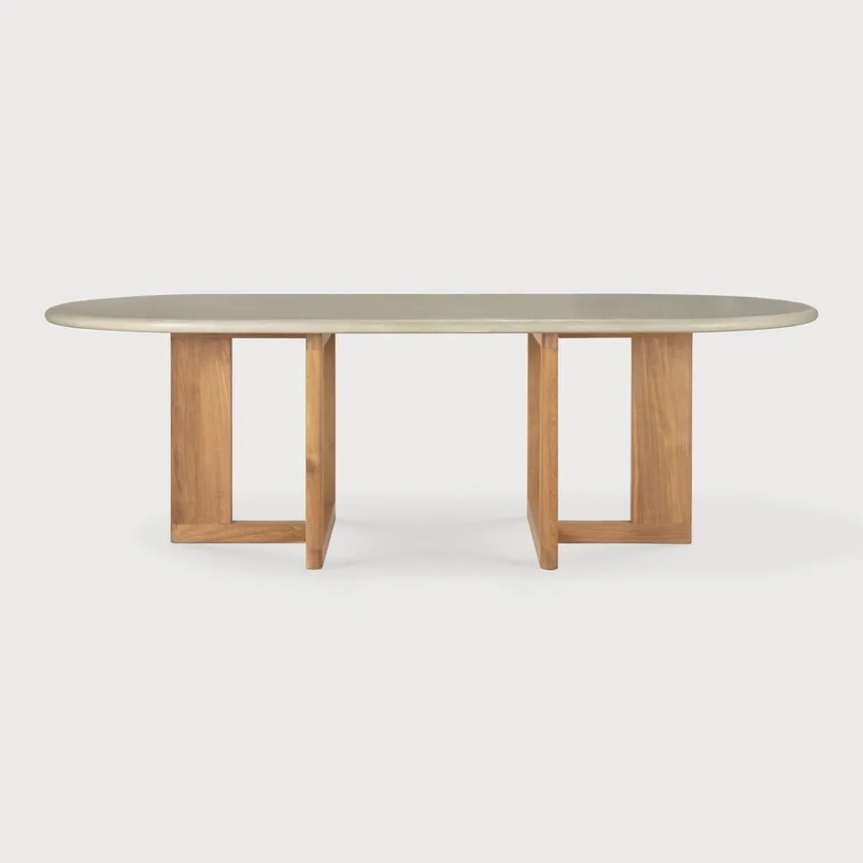 Ovale Tuintafel Trestle Beton en teakhout, 240 x 110cm