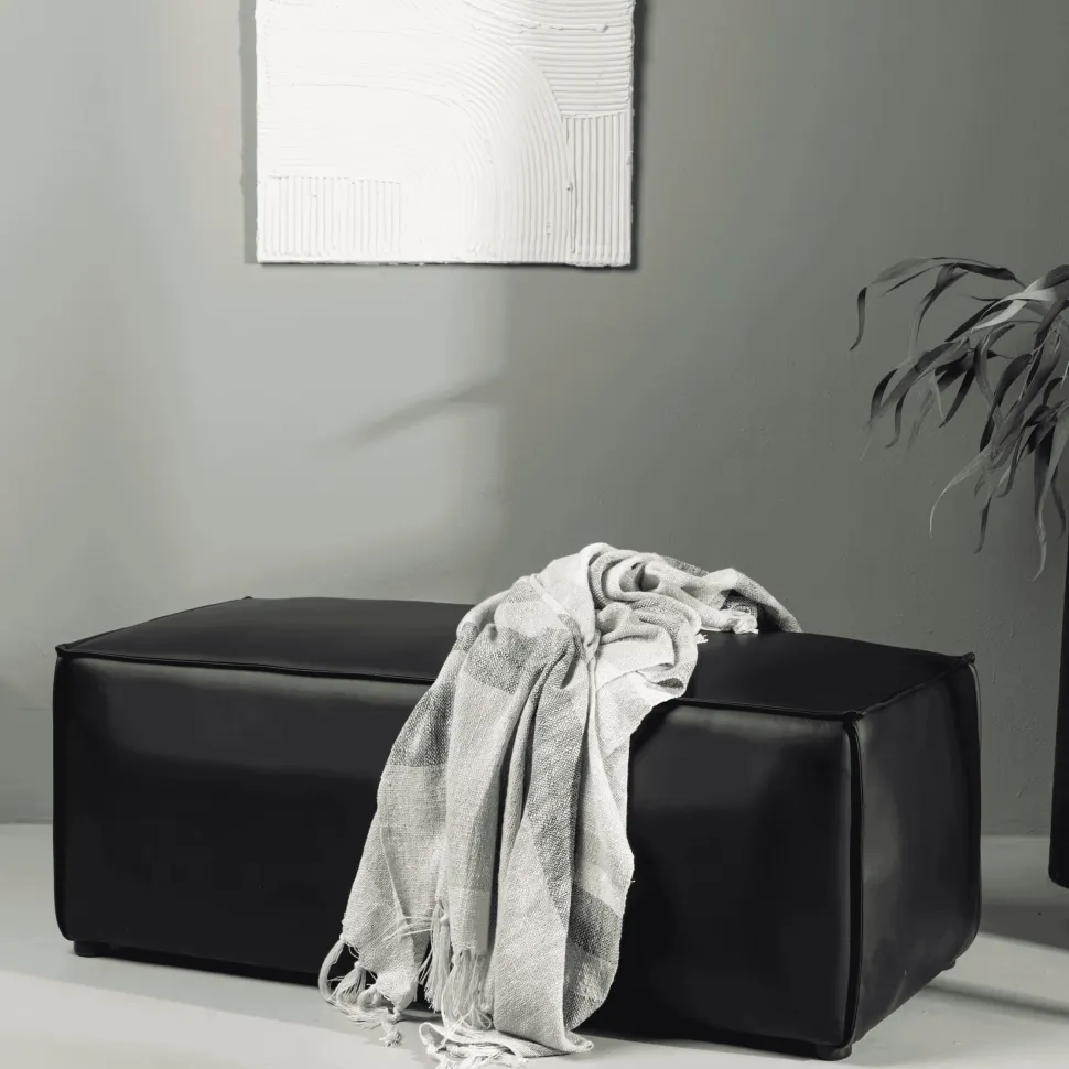 Poef Zorina Lederlook, kleur Zwart