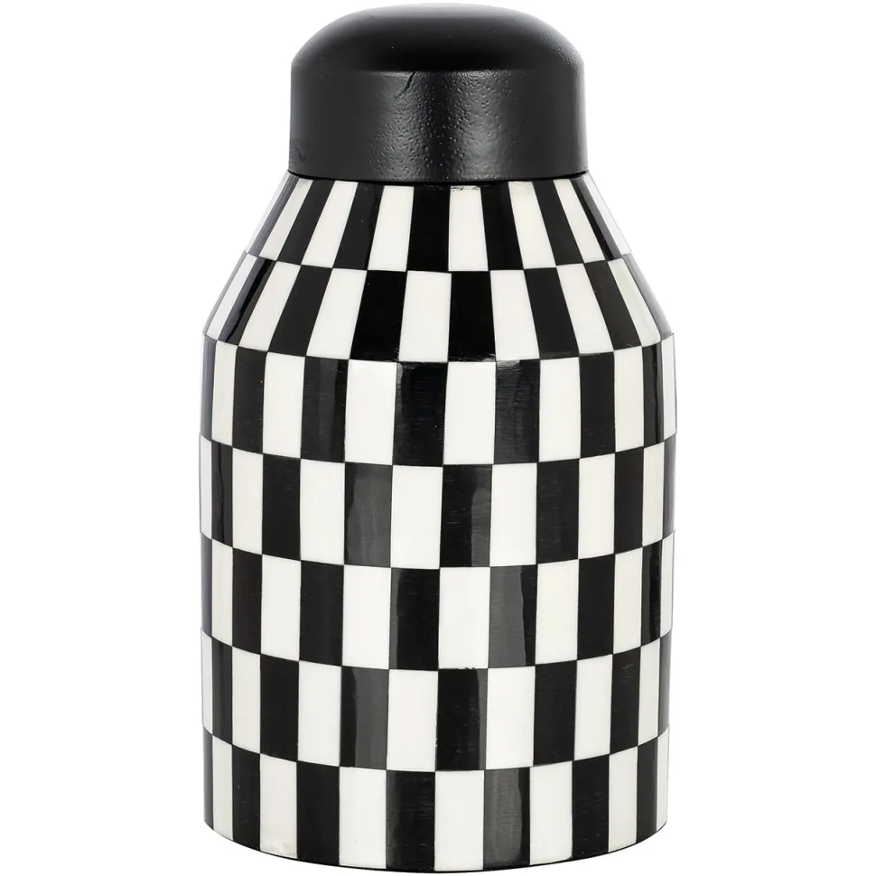 Deze unieke pot valt onmiddellijk op door zijn zwart/wit geblokt design. De strakke lijnen en het contrast tussen zwart en wit zorgen voor een moderne uitstraling, terwijl het geblokte patroon een vleugje retro charme toevoegt. Gemaakt met aandacht voor detail, is de Pot Malou niet alleen functioneel, maar ook een echte eye-catcher in elk interieur. Of het nu gaat om het presenteren van een plant of gewoon als decoratief object op zich, deze pot voegt onmiddellijk karakter en stijl toe aan elke ruimte. Leverbaar in zowel klein als groot formaat, de Pot Malou biedt veelzijdigheid en aanpasbaarheid aan verschillende decorbehoeften. Het is de perfecte combinatie van functionaliteit en esthetiek.