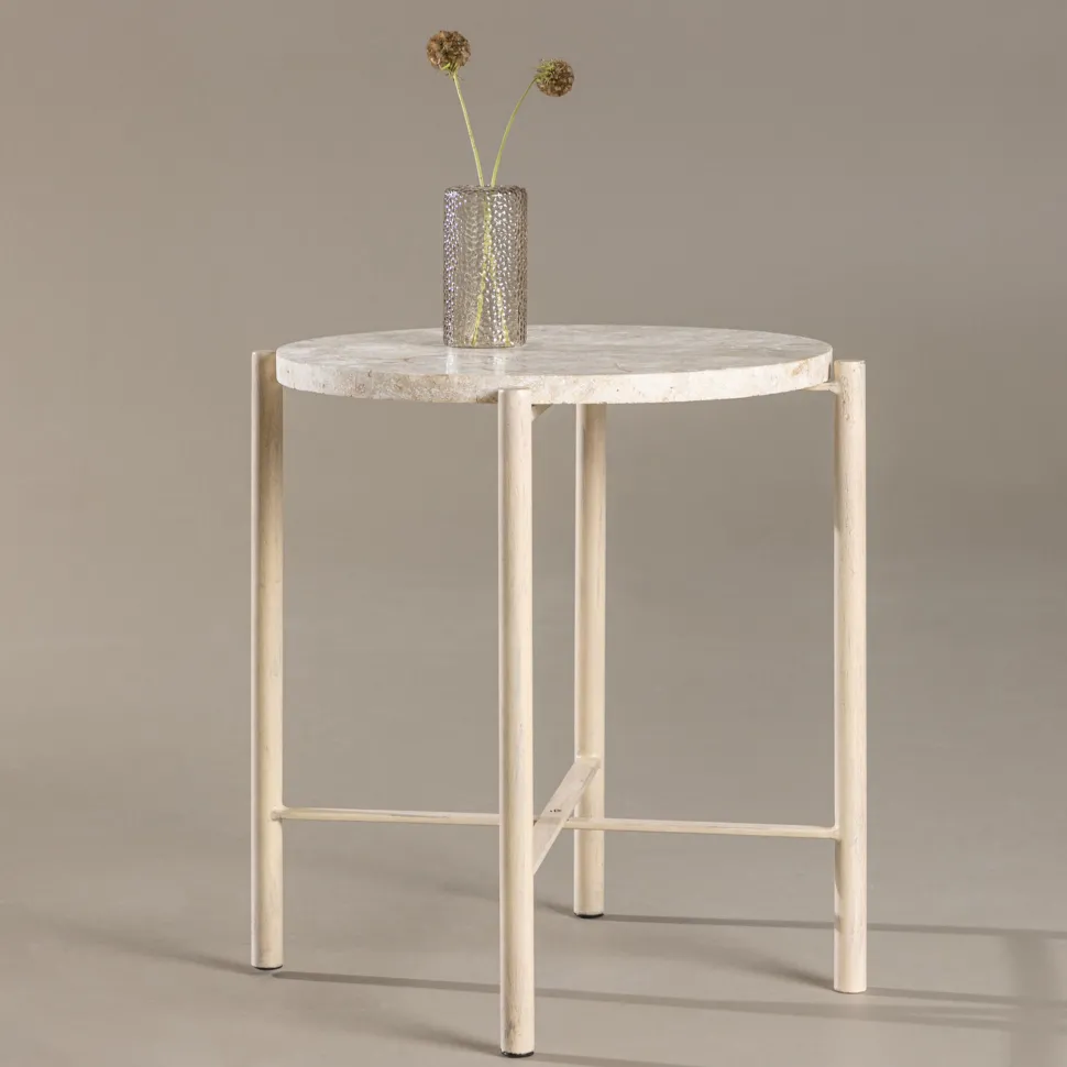 Ontdek de Arnita salontafel, een elegant en functioneel meubelstuk in een verfijnde beige kleur. Met een diameter van 40 cm is deze ronde salontafel de perfecte balans tussen stijl en praktische bruikbaarheid, waardoor hij ideaal is voor zowel kleine als grote woonkamers. Het compacte ontwerp van de Arnita salontafel maakt het gemakkelijk om hem naast de bank of fauteuil te plaatsen, en de neutrale beige kleur past harmonieus bij elke interieurstijl. Het gladde oppervlak is zowel visueel aantrekkelijk als gemakkelijk schoon te maken, waardoor de tafel perfect is voor dagelijks gebruik. Of je hem nu gebruikt om drankjes, boeken of decoratieve voorwerpen op te zetten, Arnita voegt een vleugje elegantie en functionaliteit toe aan je huis. Verfraai je interieur met de salontafel Arnita en geniet van het tijdloze ontwerp en de veelzijdigheid, die zeker een gekoesterd detail in je woonkamer zullen worden.Houd er rekening mee dat er kleurvariaties kunnen zijn omdat mactan een natuurlijk materiaal is.