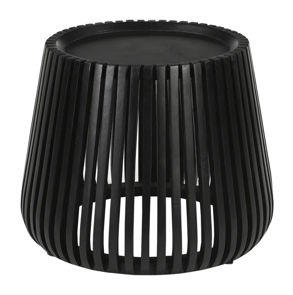 Een bijzettafel is meer dan alleen een praktische opbergruimte – het is een stijlvol accent in elke kamer. Deze bijzettafel van massief zwart mangohout maakt indruk met zijn ronde vorm en het artistieke lattenontwerp dat functionaliteit combineert met modern design. De ronde basis en het tafelblad geven de tafel een harmonieuze, compacte vorm. Het buitenste lattenontwerp zorgt voor een gestructureerde look en onderstreept de moderne stijl. De fijne lijnen voegen een dynamische textuur toe en maken van de tafel een echte blikvanger. De tafel is gemaakt van hoogwaardig mangohout en combineert stabiliteit en duurzaamheid. Het zwarte oppervlak geeft het meubelstuk een edele, matte uitstraling die gemakkelijk kan worden geïntegreerd in verschillende interieurstijlen – van modern tot industrieel. De bijzettafel met zijn ronde tafelblad biedt genoeg ruimte voor kleine voorwerpen zoals boeken, lampen of decoratieve voorwerpen. Het compacte formaat maakt het ideaal voor kleinere kamers of als aanvulling op grotere meubels. In de woonkamer als opbergruimte voor een kopje koffie, in de slaapkamer als nachtkastje of in de gang als decoratief accent – deze bijzettafel past zich moeiteloos aan verschillende eisen en kamers aan.