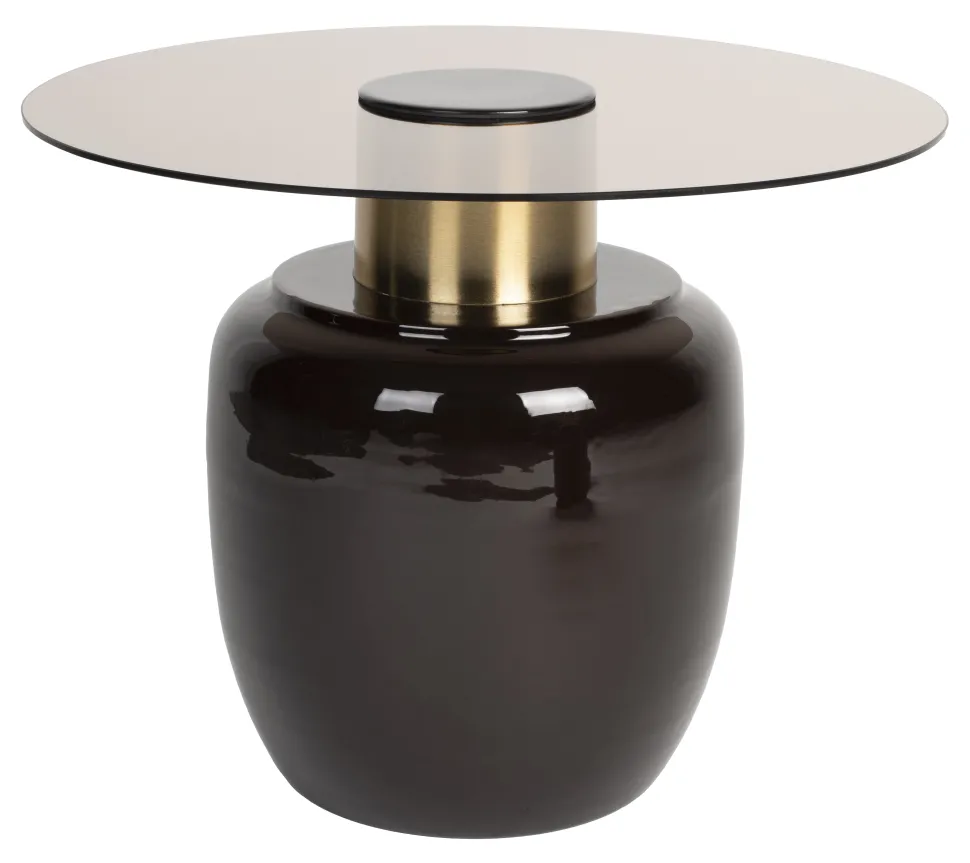 | Materiaal: | Bruin geëmailleerd onderstel, glazen blad |