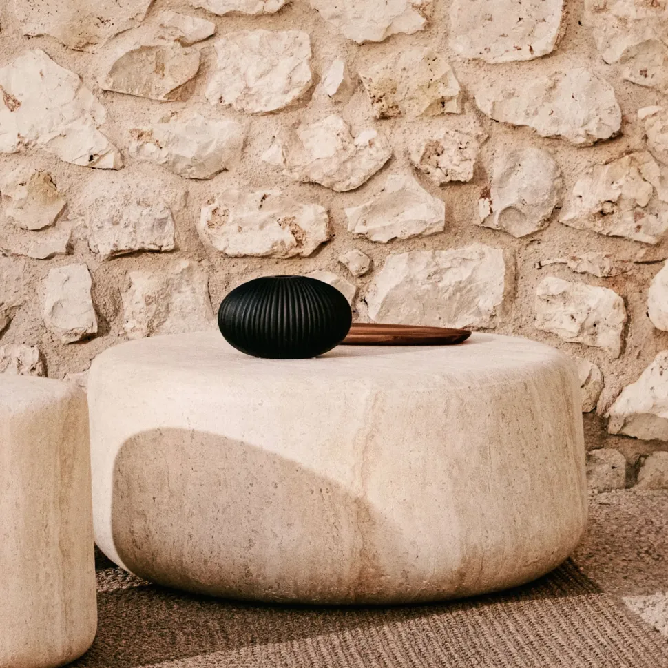Drasi is gemaakt van GFRC, een materiaal dat bestaat uit met glasvezel versterkt cement en dat een hoge bestendigheid biedt bij een lichter gewicht. Dit element valt op door zijn onberispelijke afwerking die doet denken aan travertijn. De sobere lijnen en unieke texturen maken van elke tafel een exclusief element, met zijn eigen tinten en texturen. Drasi is ideaal voor zowel binnen als buiten en valt niet alleen op door zijn esthetiek, maar ook doordat hij lang meegaat en zijn unieke karakter. Bescherm hem tegen de weersomstandigheden met Iria beschermhoezen en breng twee keer per jaar Sterina steenbeschermer aan. Microscheurtjes en onregelmatigheden die kunnen ontstaan als gevolg van de aard van het cement en temperatuurschommelingen brengen de integriteit van het product niet in gevaar, maar versterken juist het ambachtelijke en unieke karakter ervan.