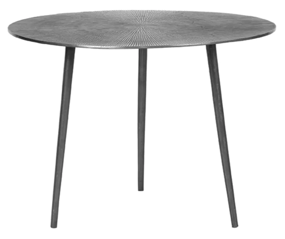 Salontafel Nobby XL, uitgevoerd in zwart is een speelse tafel met de afmeting 60x60x45 cm. De tafel is gemaakt van gegoten metaal en heeft een rond blad. De top is voorzien van een prachtige gravure; lijnen vanuit het centrum lopend naar de buitenkant. De speelse uitlopende poten zorgen voor stevigheid en een trendy uiterlijk.
