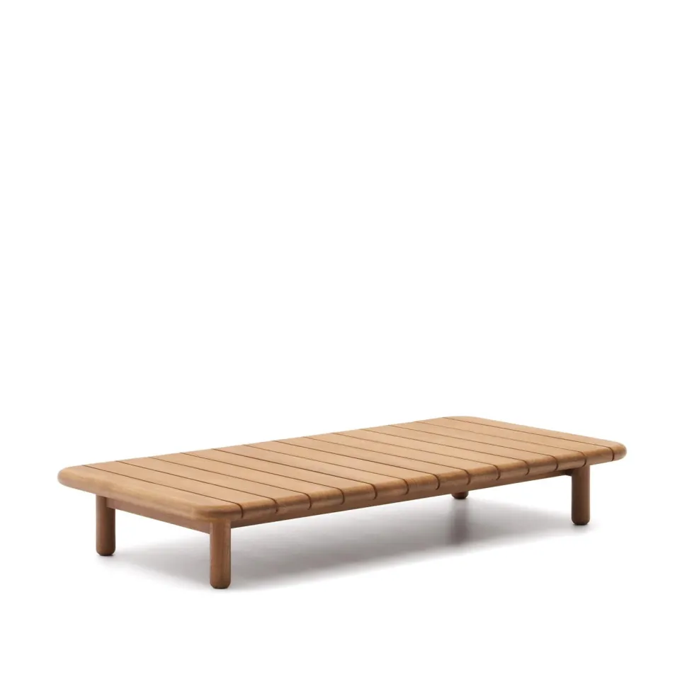 Turqueta is een exclusief ontwerp van Made Studio voor Kave Home. De eigentijdse geometrische vormen en uitgesproken horizontaliteit stralen buiten rust en comfort uit. Een collectie gemaakt van massief teakhout voor de ultieme ontspanning.