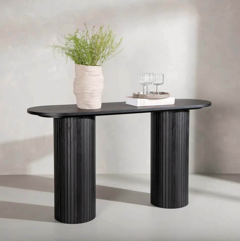 Geef de woonkamer of hal een moderne lift met deze heerlijke reliëftafel Fionna in smaakvolle look. De tafel is consequent gemaakt van MDF met fineer in een mokka -kleurige afwerking en heeft een robuust frame met twee cilinder -vormige poten in geribbeld design. Het doordachte geheel met zachte Scandinavische vormen creëert een warm en modern gevoel voor de kamer. De tafel is even netjes als praktisch en helemaal volgens de trends – een perfecte aanvulling voor in huis!