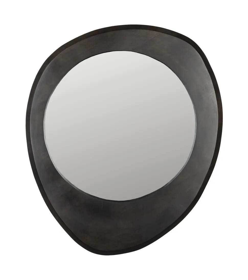 Turn a wall into the centrepiece of your interior with the Dutchbone Aren. With its special appearance, this wall mirror immediately catches your eye. The first thing you’ll notice is, of course, the organic shape and the wide frame. The frame is made of high-quality mango wood finished in a stylish black lacquer. The surface of the frame is not entirely smooth on purpose and features a small imperfection here and there. This gives it even more character with a fine, perfectly imperfect look. A look that fills the room with a warm ambience and provides a tough edge.