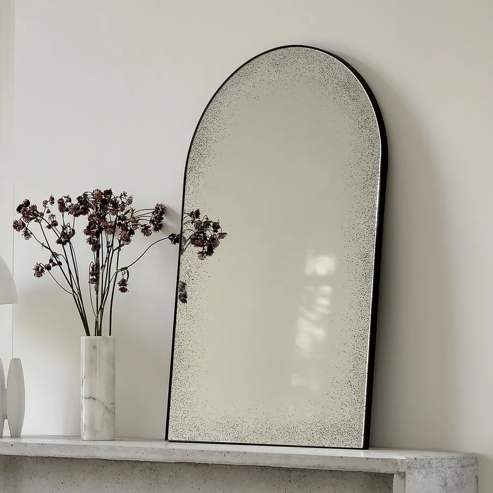 De Clear Gate spiegel straalt moderne elegantie uit. De boog en het verouderde effect geven een vintage gevoel, het enorme oppervlak en slanke metalen frame weerspiegelen dan weer de moderne tijd. Waar u deze ook plaatst, hij is ongetwijfeld een blikvanger.