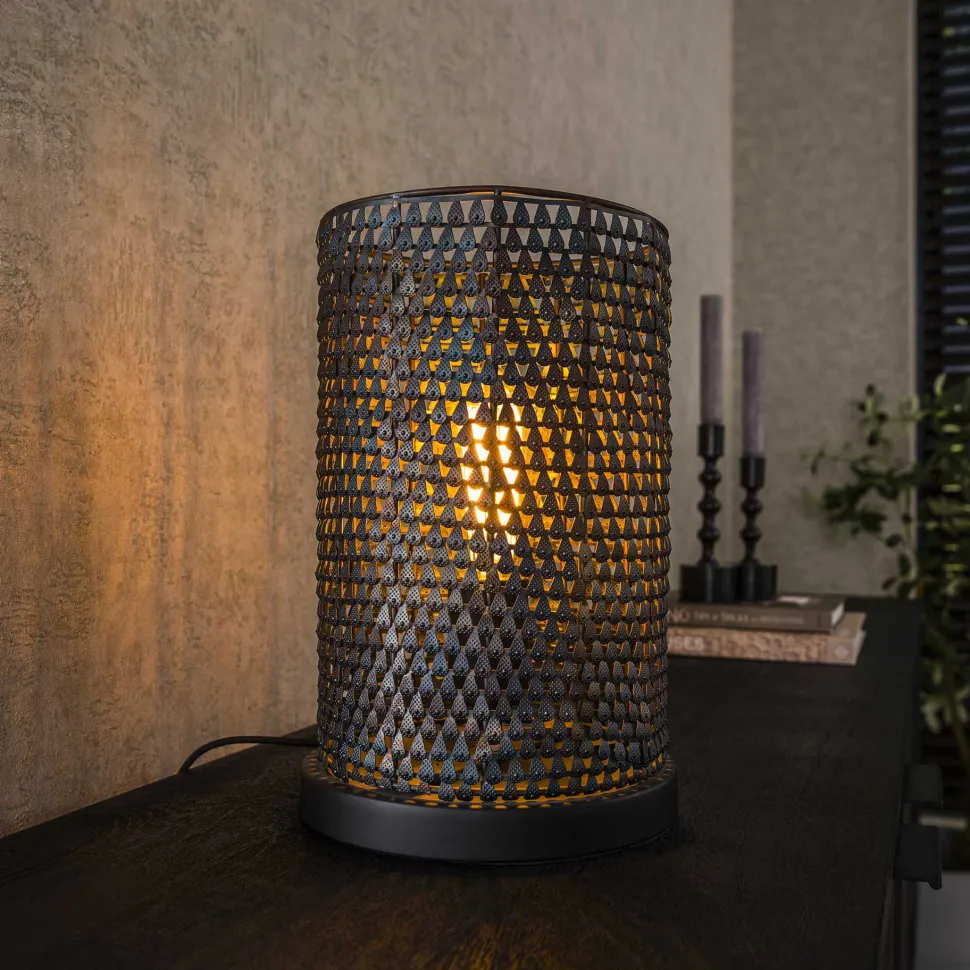 Deze “Armor” tafellamp is afgewerkt in een burned finish. Dit geeft een zwart/bruine kleur. De lamp is volledig handgemaakt en hierdoor is elke lamp uniek. De gaatjes maken deze lamp semi-transparant, waardoor het licht sfeervol door de ruimte wordt verdeeld.