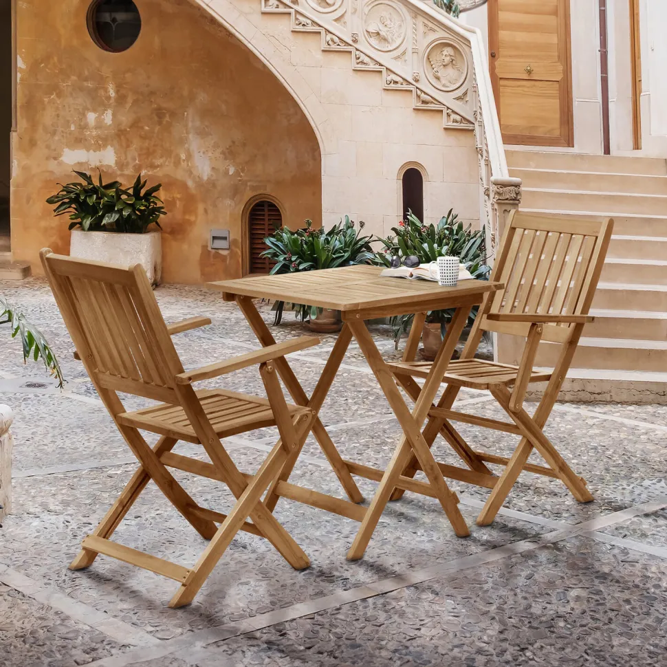 De balkonzitgroep, bestaande uit een tafel en twee stoelen, is comfortabel en praktisch tegelijk. De balkontafel en de stoelen zijn inklapbaar en maken zo ruimtebesparend opbergen mogelijk. Gemaakt van duurzaam en weerbestendig acaciahout is de set ideaal voor gebruik in de buitenruimte. Het hout is al voorgeolied voor een bijzonder fraaie afwerking. Dankzij de compacte afmetingen is de balkonset niet alleen ideaal voor tuin en terras, maar kan hij ook op de meeste balkons worden gebruikt. Of het nu is voor een ontspannen ontbijt of om buiten te genieten van gezellige uurtjes zon – met deze kleine zithoek haal je een ruimtebesparende en comfortabele oplossing in huis.