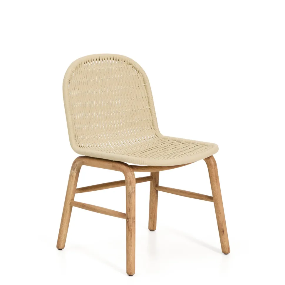 De Alipa stoel weerspiegelt evenwicht en natuurlijkheid in een ontwerp dat kracht en detail samenbrengt. Elk meubel is gemaakt van massief acaciahout en heeft unieke nerven die karakter en een tijdloze uitstraling toevoegen. De zitting is gemaakt van UV-bestendig, handgeweven touw en biedt zowel binnen als buiten comfort en duurzaamheid. De stevige structuur is ontworpen voor dagelijks gebruik en zijn stabiliteit en schoonheid na verloop van tijd te behouden. Om het hout in optimale conditie te houden, raden we aan om ten minste eenmaal per jaar Sterina houtbeschermer aan te brengen. Het gebruikte hout is FSC™ 100%-gecertificeerd en afkomstig uit verantwoord beheerde bossen.