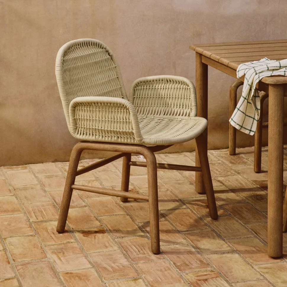 De Alipa stoel combineert comfort, duurzaamheid en balans. Elk meubel is gemaakt van massief acaciahout en heeft unieke nerven die karakter en een serene uitstraling toevoegen. De zitting is gemaakt van UV-bestendig, handgeweven touw, is stevig en blijft er na verloop van tijd mooi uitzien. Dankzij het veelzijdige ontwerp kan hij zowel binnen als buiten worden gebruikt en past hij zich op natuurlijke wijze aan elke omgeving aan. Om het hout in de best mogelijke conditie te houden, raden we aan om ten minste eenmaal per jaar Sterina houtbeschermer aan te brengen. Het hout is FSC™ 100%-gecertificeerd en afkomstig uit verantwoord beheerde bossen.