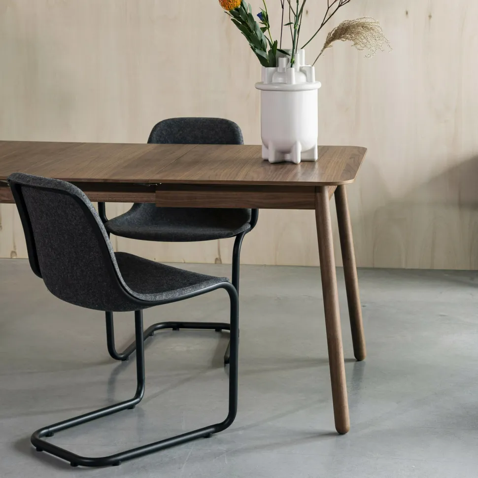 Deze eettafel is met 120×80 cm top voor kleinere ruimtes, maar is uitgeschoven een fijne 162×80 cm groot. Een groter huis, een grotereGlimps? Tuurlijk! KiesGlimps 180×90 cm. Verkrijgbaar in naturel en walnoot. Onze grootsteGlimpskan worden uitgerekt worden tot een tafel van 240×90 cm. Groot genoeg voor tien van je vrienden.