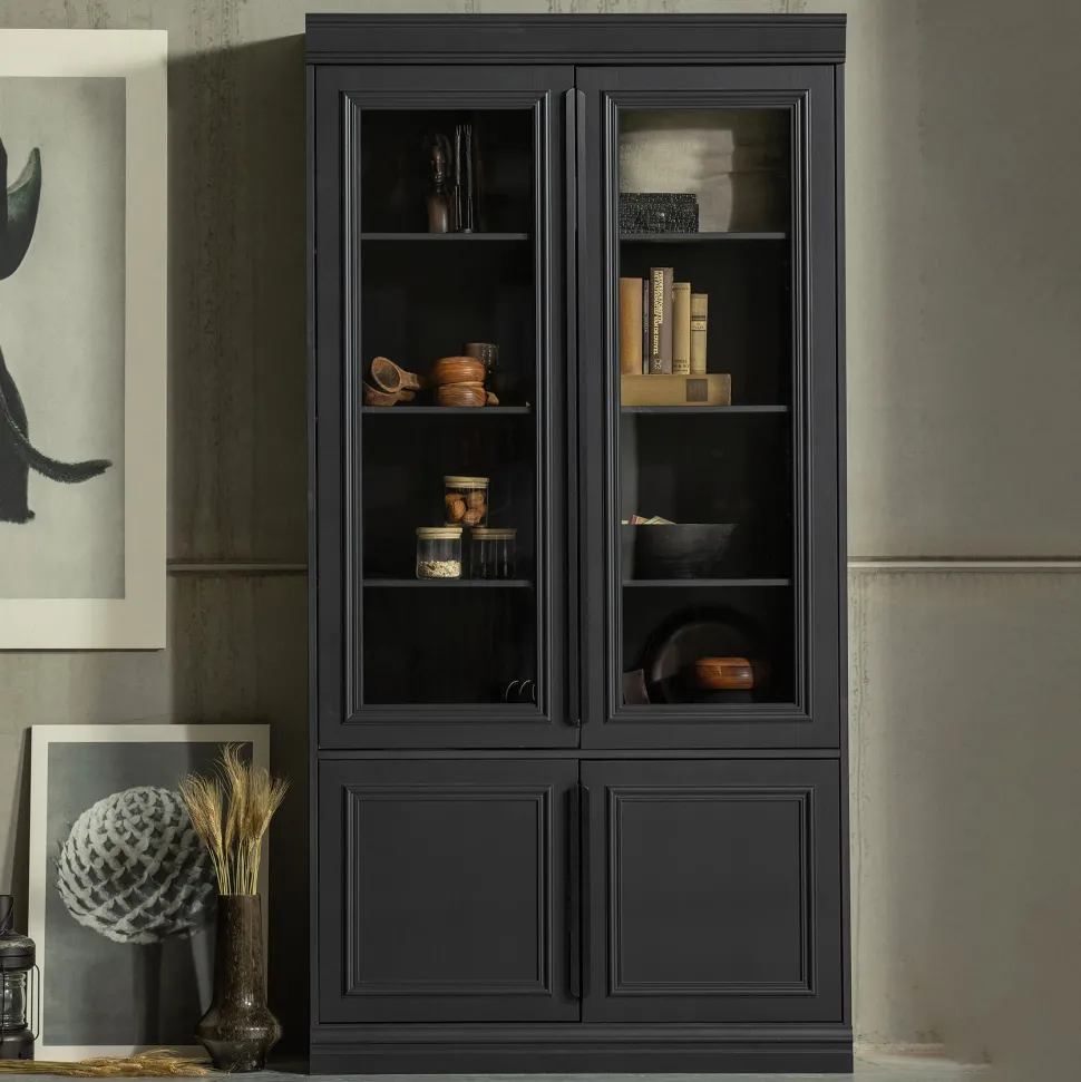 Een mooie, robuuste kast met klassieke elementen, dat is de Organize kast uit de collectie van het Nederlandse interieurlabel WOOOD. De stijlvolle, diepzwarte kleur in combinatie met de matzwarte handgrepen geeft een moderne twist aan de overwegend klassieke kast. De twee bovenste deuren zijn voorzien van glas, waardoor de kast perfect is voor het displayen van je accessoires.