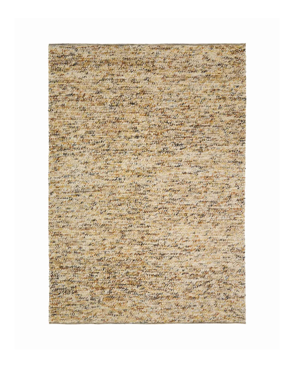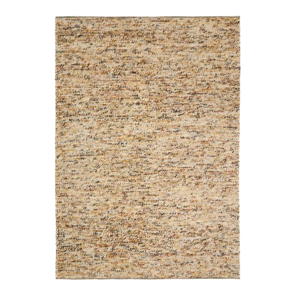 Het bouclévloerkleed biedt een omhullende textuur en een elegant ontwerp dat elke kamer transformeert. Gemaakt van een zorgvuldig geselecteerde wolmix, biedt het een warm oppervlak dat aangenaam aanvoelt. De handgemaakte productie zorgt ervoor dat elk stuk uniek is, met kleine variaties die de exclusiviteit en authenticiteit versterken. De bouclé-afwerking benadrukt de zachtheid en het volume die kenmerkend zijn voor dit type stof en zorgt voor comfort onder de voeten en een geraffineerd visueel effect. Wol kan wat vezels afgeven; daarom wordt aanbevolen het vloerkleed in de richting van de vezel te stofzuigen en losse draden voorzichtig met een schaar af te knippen om het nette en verzorgde uiterlijk te behouden.