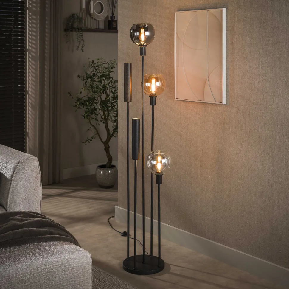 Vloerlamp Janetta Glas en metaal, 5-lamps