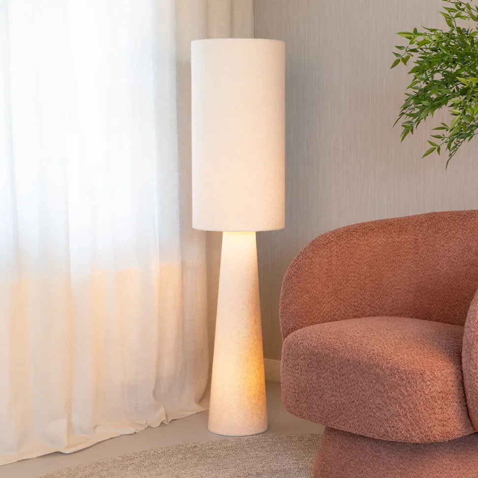 De zachte bouclé stof van deze Loft vloerlamp zorgt voor veel sfeer in jouw woning. Het minimalistische design maakt dat de Loft vloerlamp zich kan schikken in vele interieurstijlen. Deze Loft vloerlamp bevat twee lichtbronnen, zowel bovenin als onderin de lamp, wat deze lamp nog unieker en sfeervoller maakt.