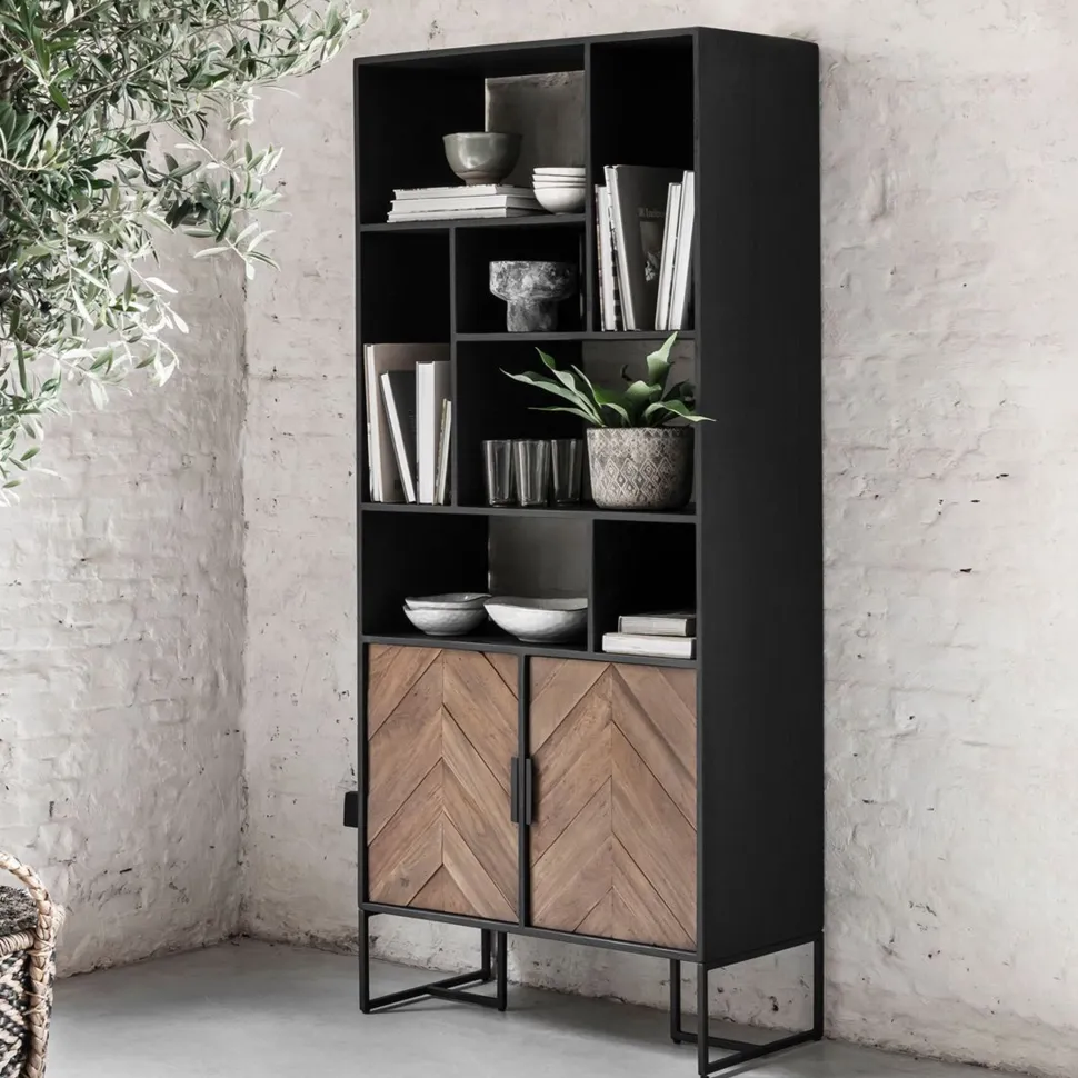 Als je op zoek bent naar bijzondere meubels, dan is onze Criss Cross collectie iets voor jou. Deze kast is gemaakt van een combinatie tussen gemixt hout en staal en valt op dankzij het visgraatpatroon. Wandkast Criss Cross beschikt over 2 deuren en 7 open vakken en heeft een afmeting van 185x80x40 cm.