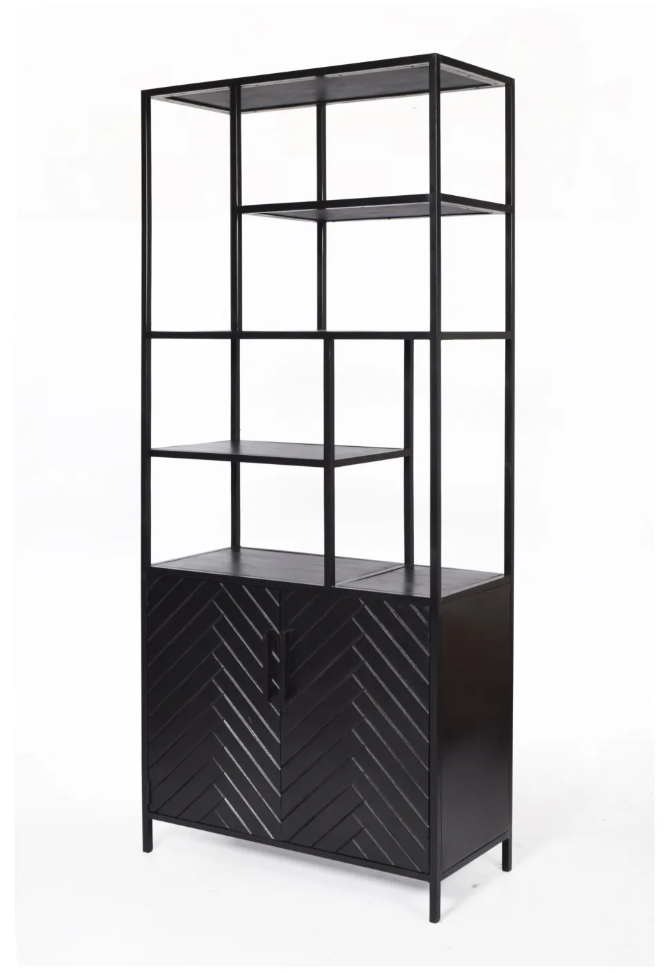Ontdek de charme van de kasten uit de York Collectie van Livingfurn, een stijlvolle eyecatcher voor jouw woonkamer. Het zwarte mangohout vormt een prachtig contrast met het visgraatpatroon op de deuren van het tv-meubel. Het frame, gemaakt van gecoat staal, voegt een extra vleugje chic toe aan de York meubelen, waardoor ze een verfijnde toevoeging zijn aan je interieur.