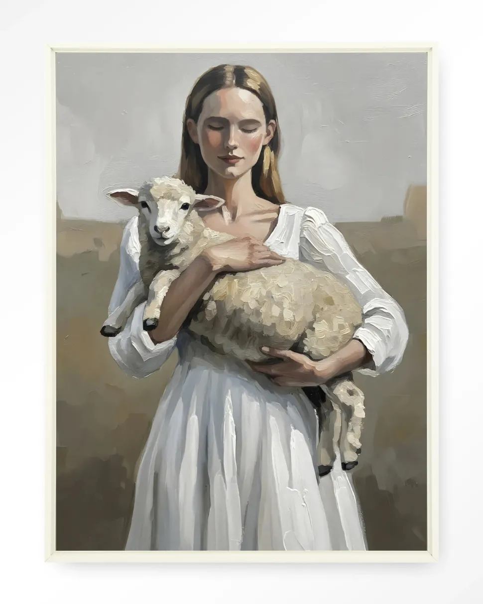 Wandkleed Baby Sheep in maat en frame naar keuze