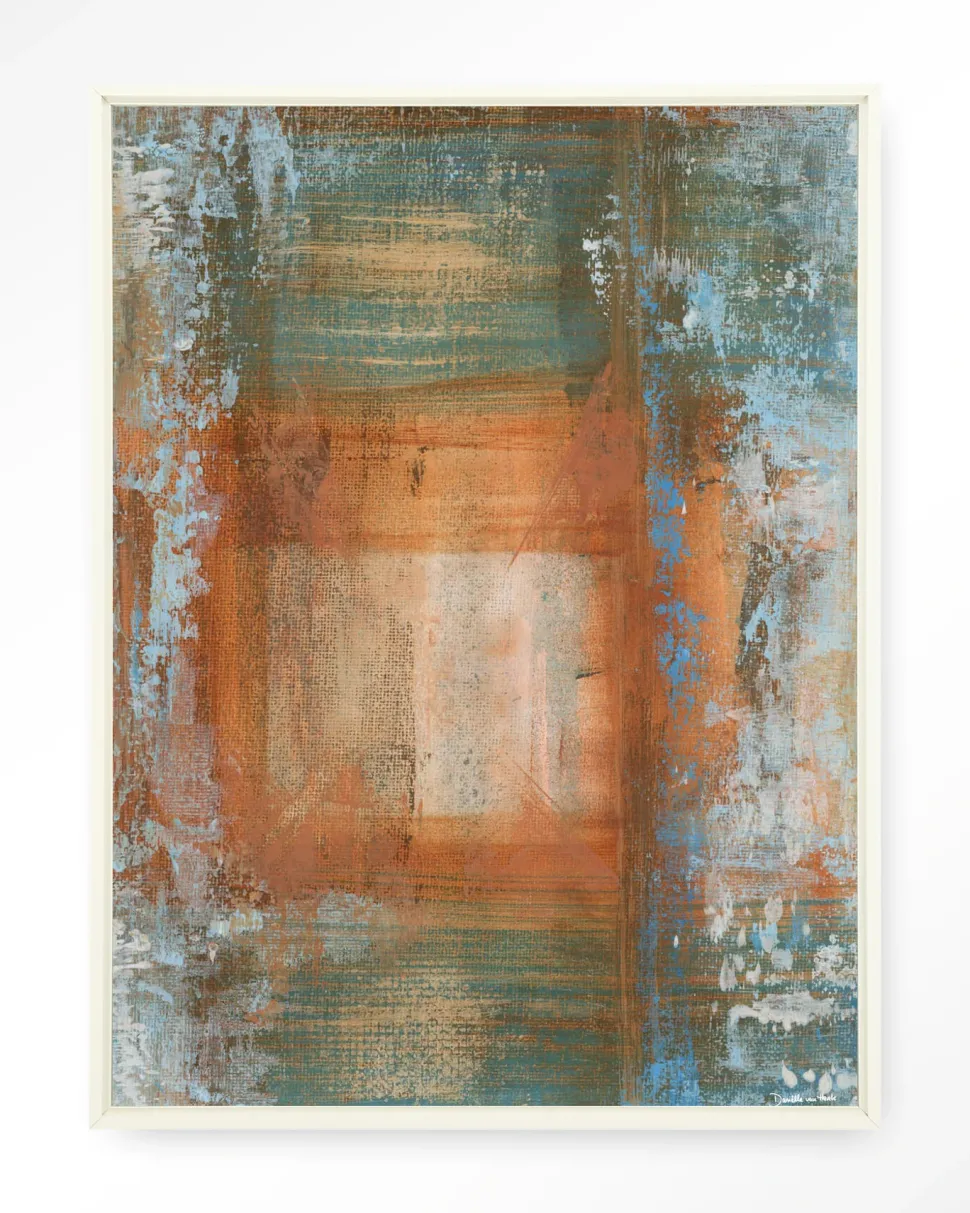 Wandkleed Blue Ocker Abstract 1 in maat en frame naar keuze