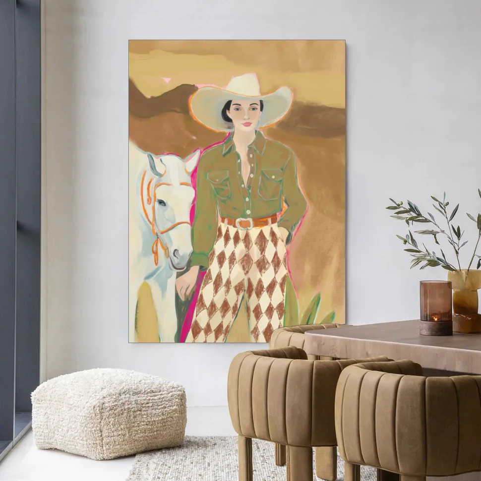 Wandkleed Cowgirl 3 in maat en frame naar keuze