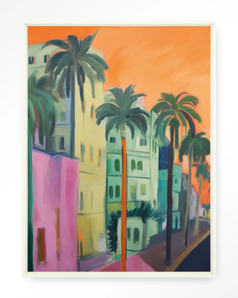 Wandkleed Palm Street in maat en frame naar keuze