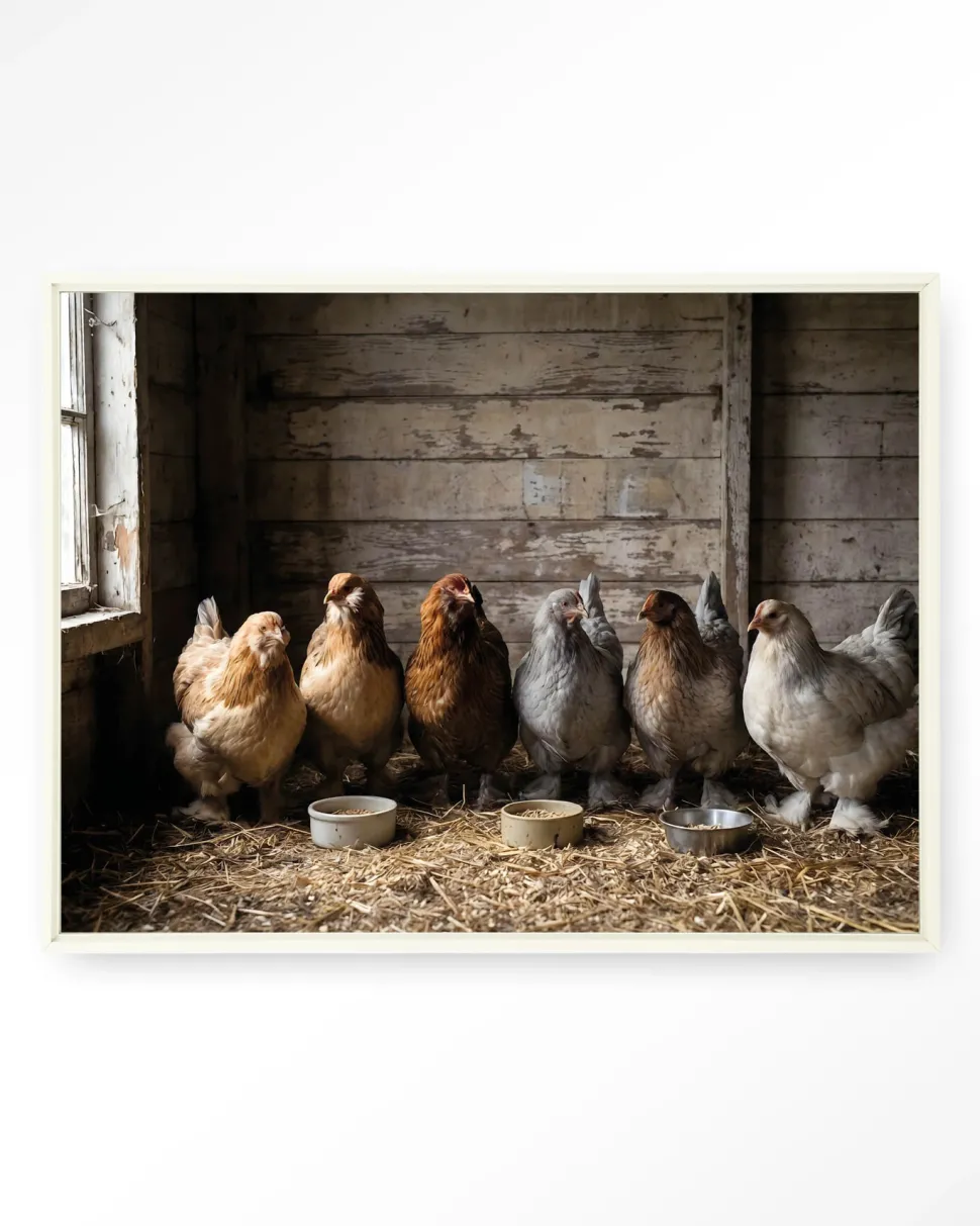 Wandkleed The Chicken Barn in maat en frame naar keuze