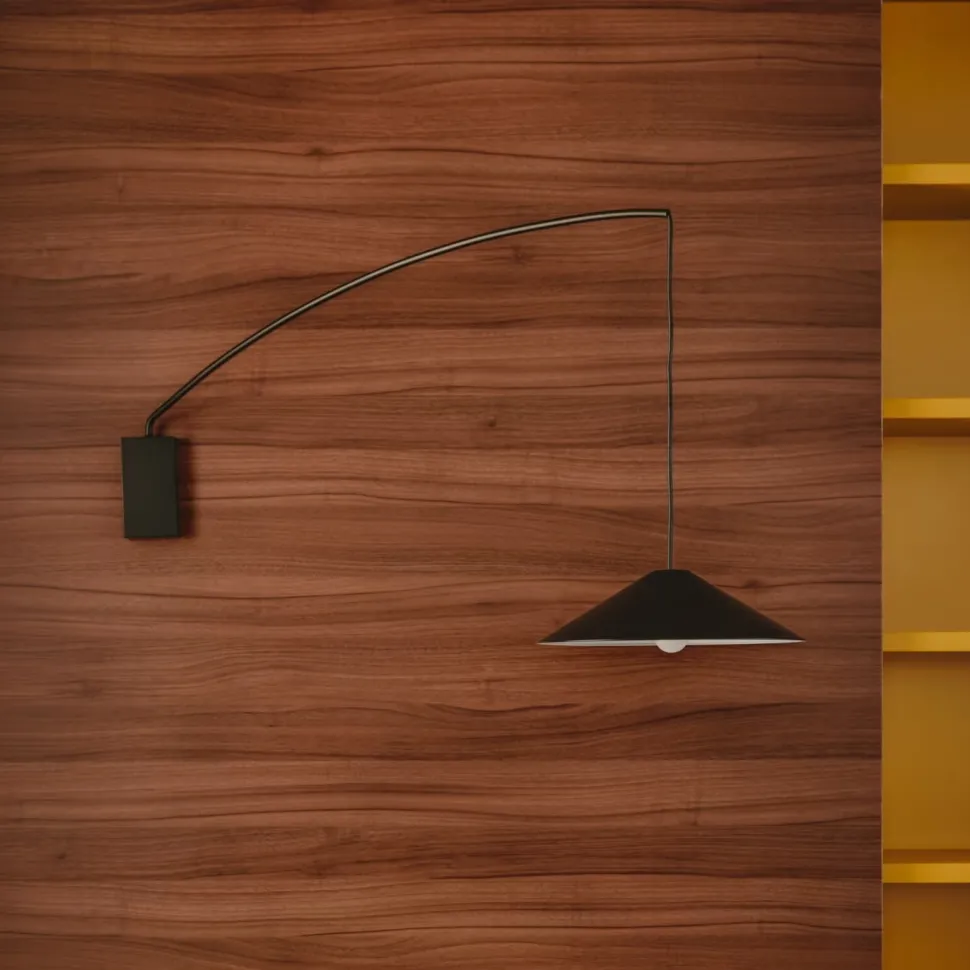 - Zwarte metalen wandlamp met draaibare arm.