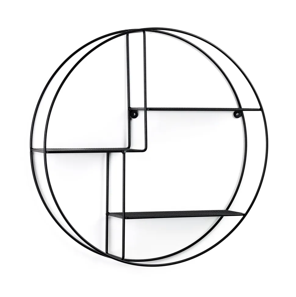 Het wandrek Across is een ronde, stalen structuur die zwart is gespoten, met drie planken op verschillende hoogtes. Een ideaal stuk voor elk type ruimte en om je kleine accessoires op te leggen. Show design.