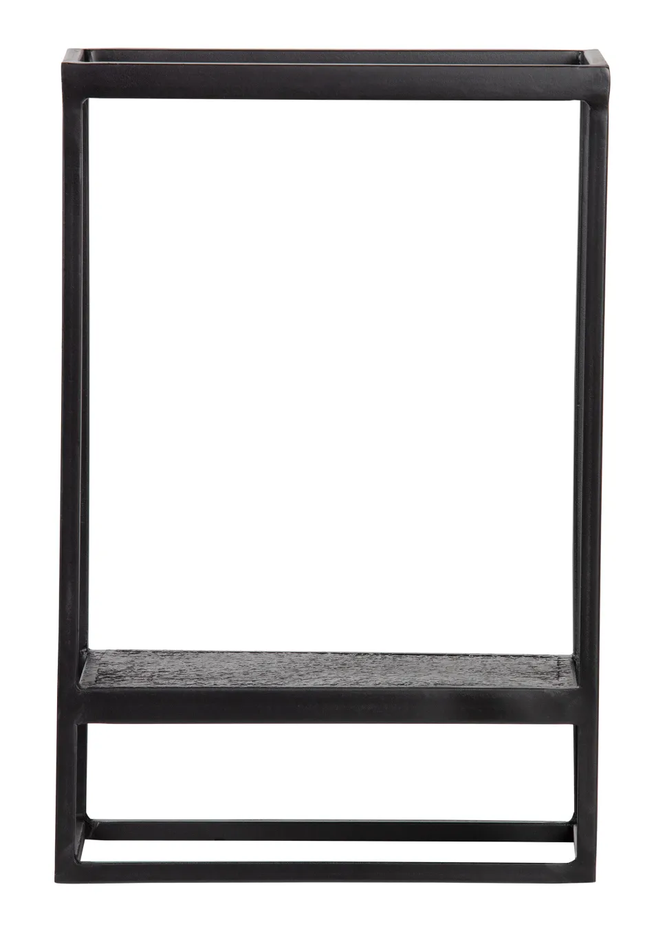 Met het zwarte metalen wandrek Febe heb je een trendy en eigentijdse wandrek in huis. Door de UV-bescherming kan dit rek, onder normale weersomstandigheden, ook buiten worden gebruikt. Met de 2 ophanghaken, die aan de bovenkant in het metaal zijn gelast, kan het rek eenvoudig opgehangen worden.