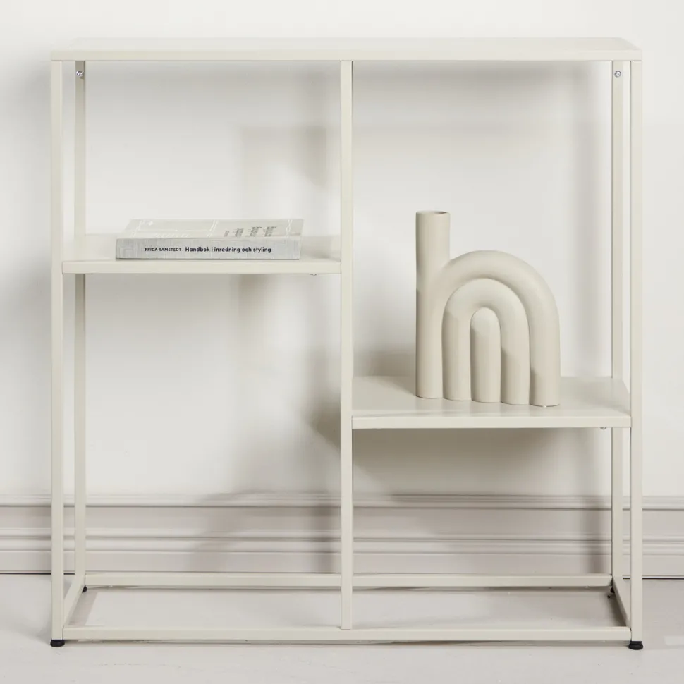 Keonte is een staande plank in een zachte beige tint die rust en harmonie in de kamer brengt. Met zijn open structuur en strakke vorm wordt het een natuurlijk element in zowel moderne als klassieke interieurs.