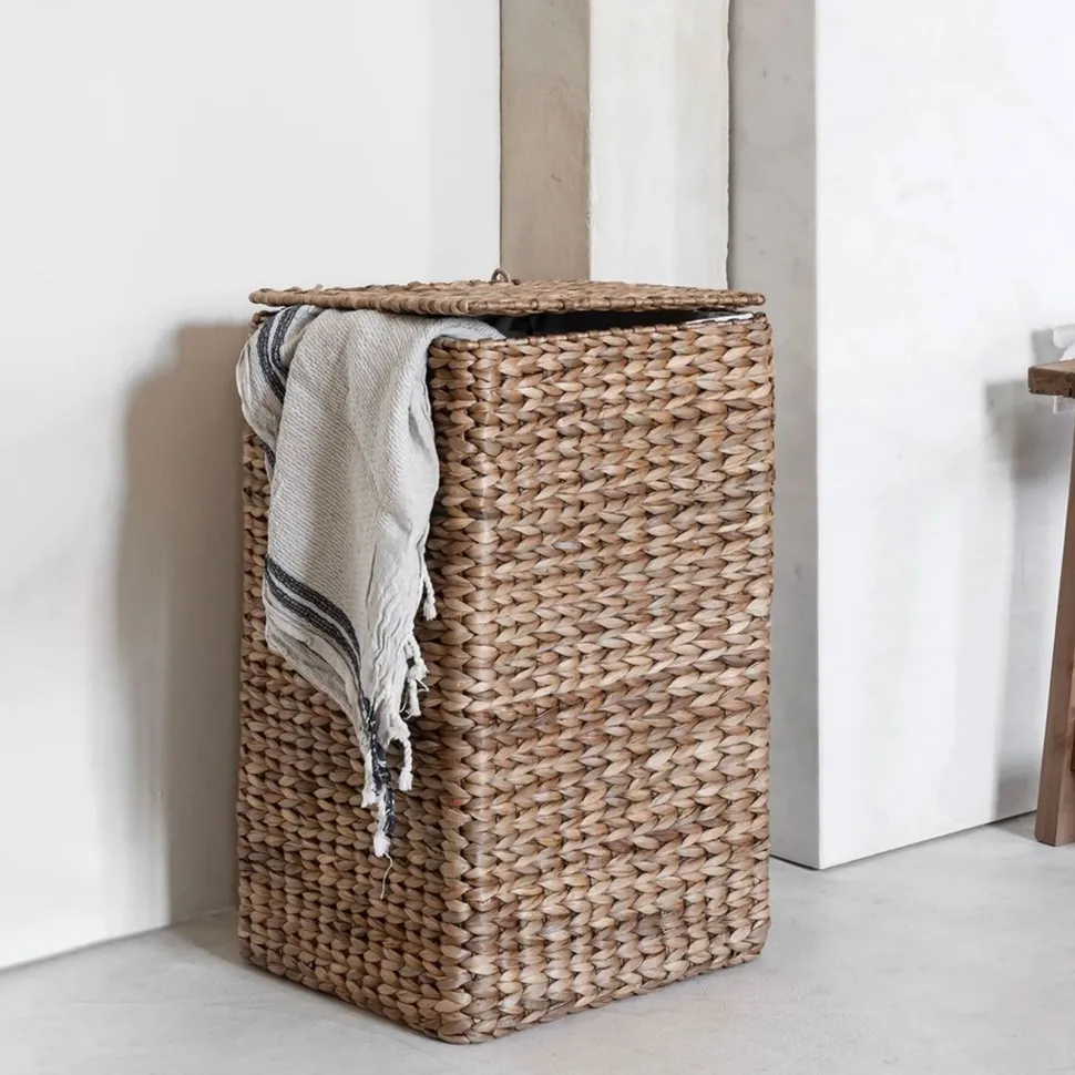 Wasmand Palawan is gemaakt van waterhyacint, een stevig en duurzaam materiaal. De wasmand is er in twee verschillende kleuren, handig voor de gekleurde en witte was. Palawan heeft een afmeting van 60x33x33 cm en komt inclusief deksel en linnen zak.