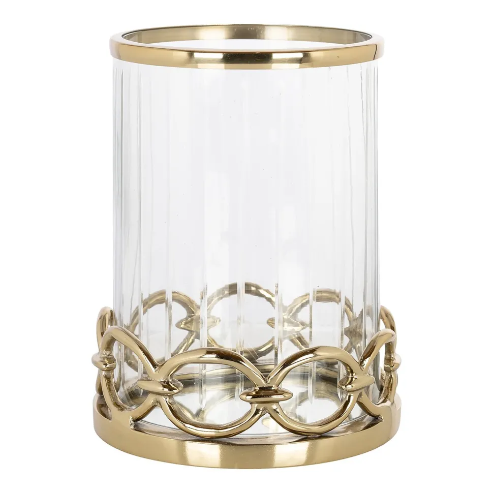 Windlicht Jayce is een ware blikvanger in elk interieur. Het prachtige ontwerp, vervaardigd uit goudkleurig aluminium, vangt het licht op een unieke manier en creëert een sfeervolle ambiance. De fijne afwerking en het tijdloze design maken van Jayce een onmisbaar stuk voor liefhebbers van verfijnde decoratie.