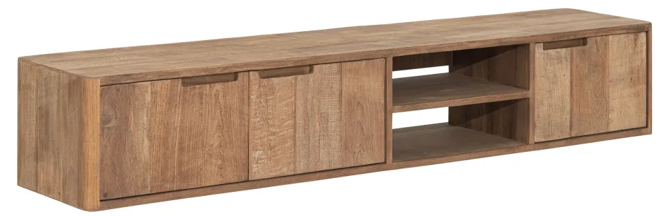 Zwevend TV-meubel Bliss Teakhout, Met deurtjes